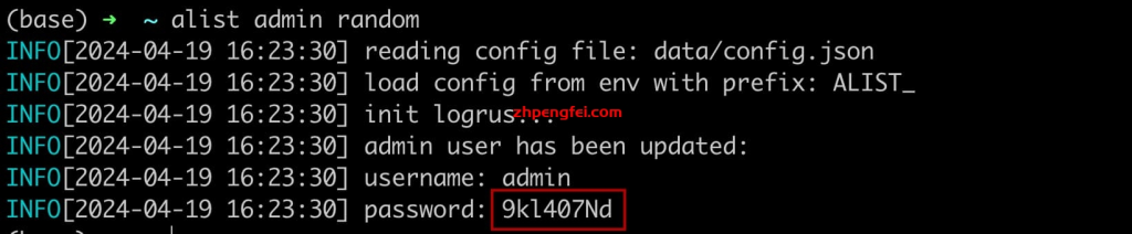 命令行输入:alist admin random,返回随机密码,如下图所示: