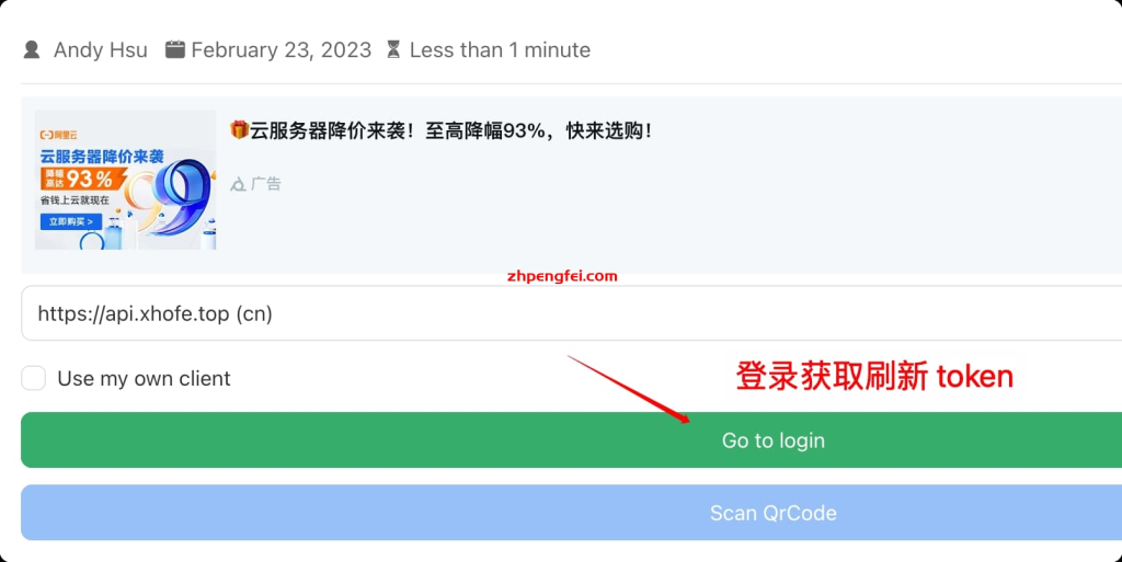 点击 Go to login登录阿里云盘,或点击 Scan QrCode使用阿里云盘手机端 APP扫描登录