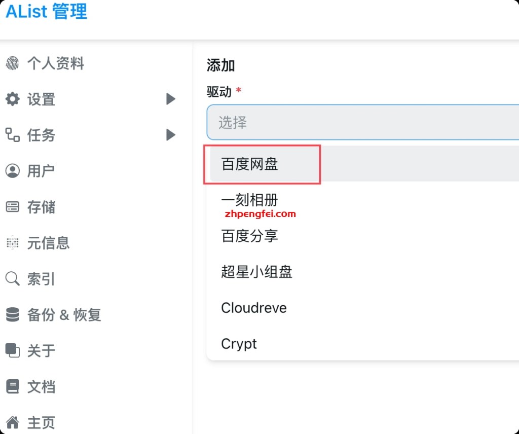 云盘类型可以选择,使用 v3.25.1及以上版本的AList添加驱动时进行设置,默认选择的是默认类型