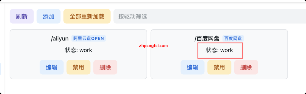 保存之后,百度网盘的状态也是 work,说明挂载好了