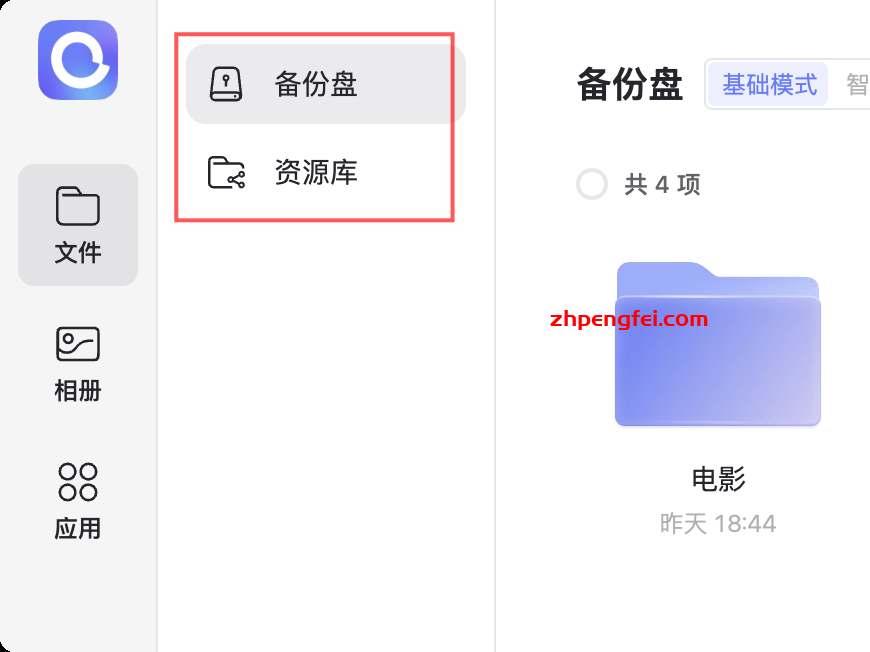 资源库内容,没有达人等级用户默认展示的是备份盘内容