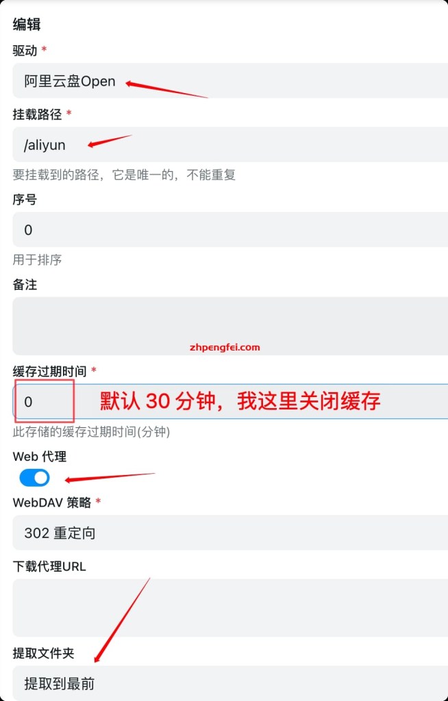 4、缓存过期时间一开始我是保持默认30分钟,当我在阿里云盘新增文件后,回到alist这边刷新还是没有最新文件,需要alist restart 重启服务才行,然后将缓存过期设置为 0,再次重启服务, 再向盘内增加删除文件就会时时刷新