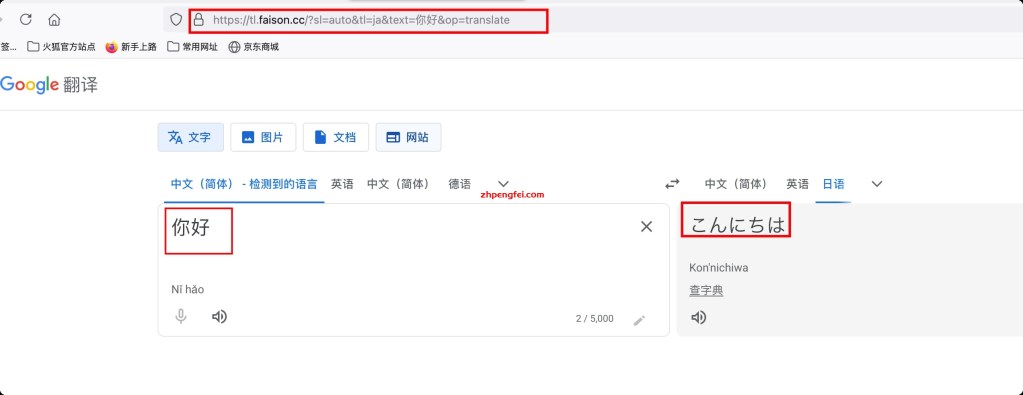 curl -X GET "https://tl.faison.cc/translate_a/single?client=gtx&sl=zh-CN&tl=en&dt=t&q=你好,中国" #结果如下图所示